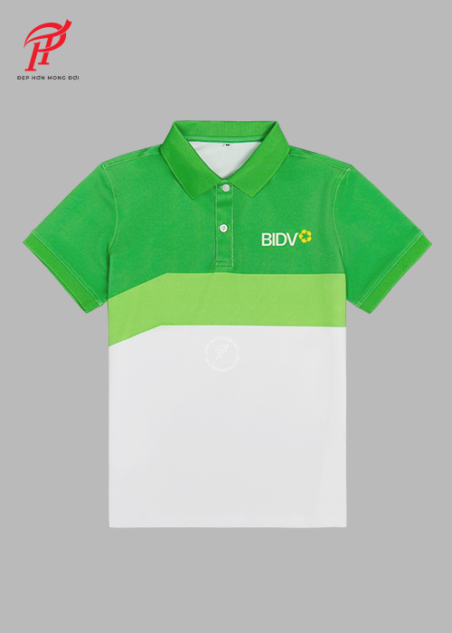 POLO ĐỒNG PHỤC HỘI THAO BIDV XANH LÁ PHỐI TRẮNG PL031